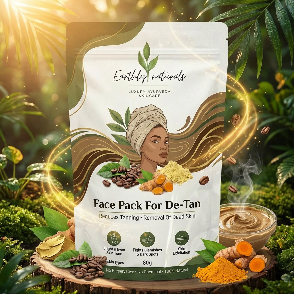 Earthly Naturals De-Tan Face Pack is a luxury ayurvedic skincare blend crafted to gently reduce tanning, remove dead skin, and revive dull complexion. Powered with natural clays and herbal ingredients, it deeply cleanses pores, exfoliates skin, and helps achieve a brighter, even skin tone. This chemical-free face pack refreshes tired skin, fights blemishes and dark spots, and leaves your face feeling smooth, clean, and naturally glowing—perfect for all skin types and regular use.