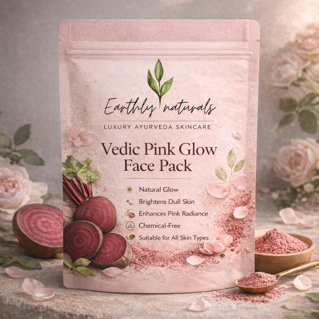 Crafted with the essence of beetroot and time-honored Ayurvedic botanicals, the Vedic Pink Glow Face Pack is designed to restore skin’s natural radiance and clarity. This refined herbal blend gently purifies, revitalizes, and illuminates the complexion, revealing a soft, healthy glow.